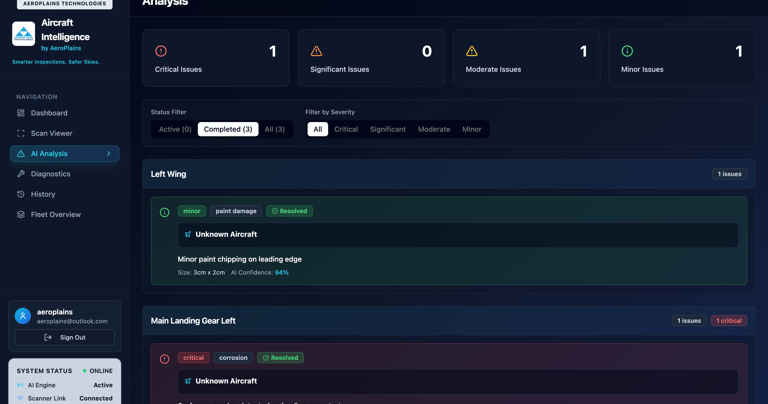 Our centralized, AI powered dashboard is the heart of the AeroPlains Technologies. It gives full visibility into aircraft and vehicle health in real time to assist in maintenance decisions.